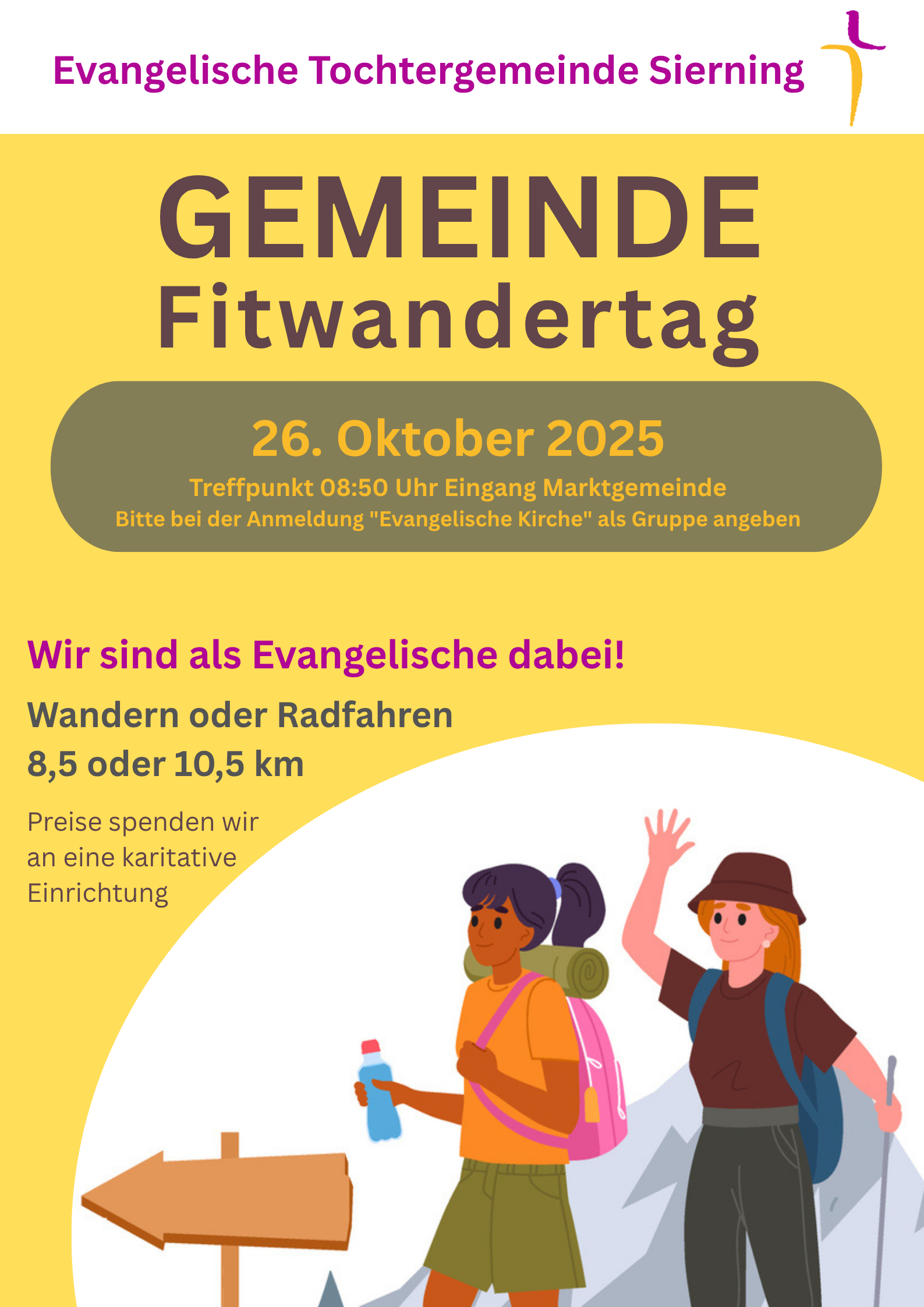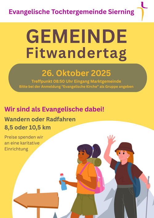 Treffpunkt um 08:50 Uhr vor dem Gemeindeamt Sierning, Anmeldung unter Gruppe "Evangelische Kirche" bei der Anmeldung